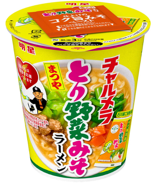 『明星 チャルメラカップ とり野菜みそラーメン[12個入、カップ麺、まつや、復興支援、石川県ご当地の味、まろやかな味噌と野菜の旨み、71g]』は、まろやかな味噌と旨味があっておいしいです!